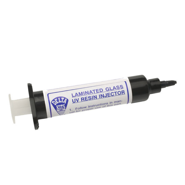 Ultraviolet resistant 10cc size syringe for injecting windshield repair resin into rock chips or small cracks in laminated glass. This 10cc UV Resistant Syringe replaces many syringe type injectors. Disposable, dispensing polypropylene syringe blocks UV light to prevent spontaneous curing of windshield repair resin.